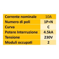 Interruttore magnetotermico modulare BTDIN-RS 1P+N curva C - In= 16A BTDIN-RS - interruttore magnetotermico 1P+N curva C - 4,5kA - 2 moduli DIN - 230V - In=16A