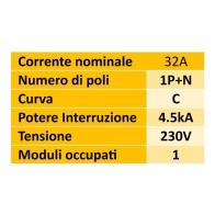 Magnetotermico 32A curva C 1P+N 4.5KA 1M - BTicino