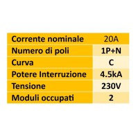 Magnetotermico 20A curva C 1P+N 4.5KA 2M FC810 - BTicino