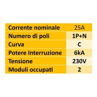 Magnetotermico differenziale 25A tipo AC 300 mA curva C 1P+N 4.5kA 2M PKN4-25/1N/C/03-MW - EATON