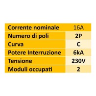 Magnetotermico 16A curva C 2P 6KA 2M C62N - Elmark