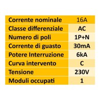 Magnetotermico differenziale 16A tipo AC 30 mA curva C 1P+N 6kA 1M 5SV13161-KK16 - Siemens