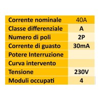 Blocco differenziale 40A tipo A 30 mA 2P 4M 5SM2622-6 - Siemens